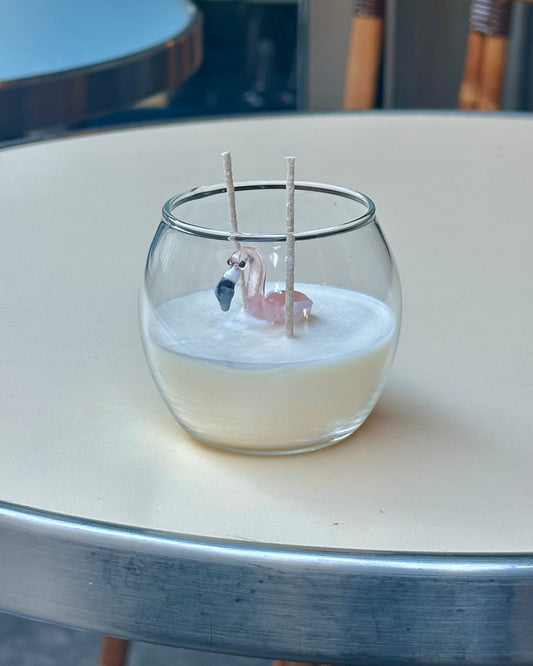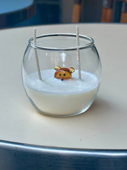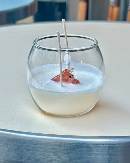 Inside a clear, minimalist glass rests a handcrafted Murano glass animal figurine, delicately shaped and suspended within smooth white soy wax. The result is timeless, artistic, and quietly luxurious.
