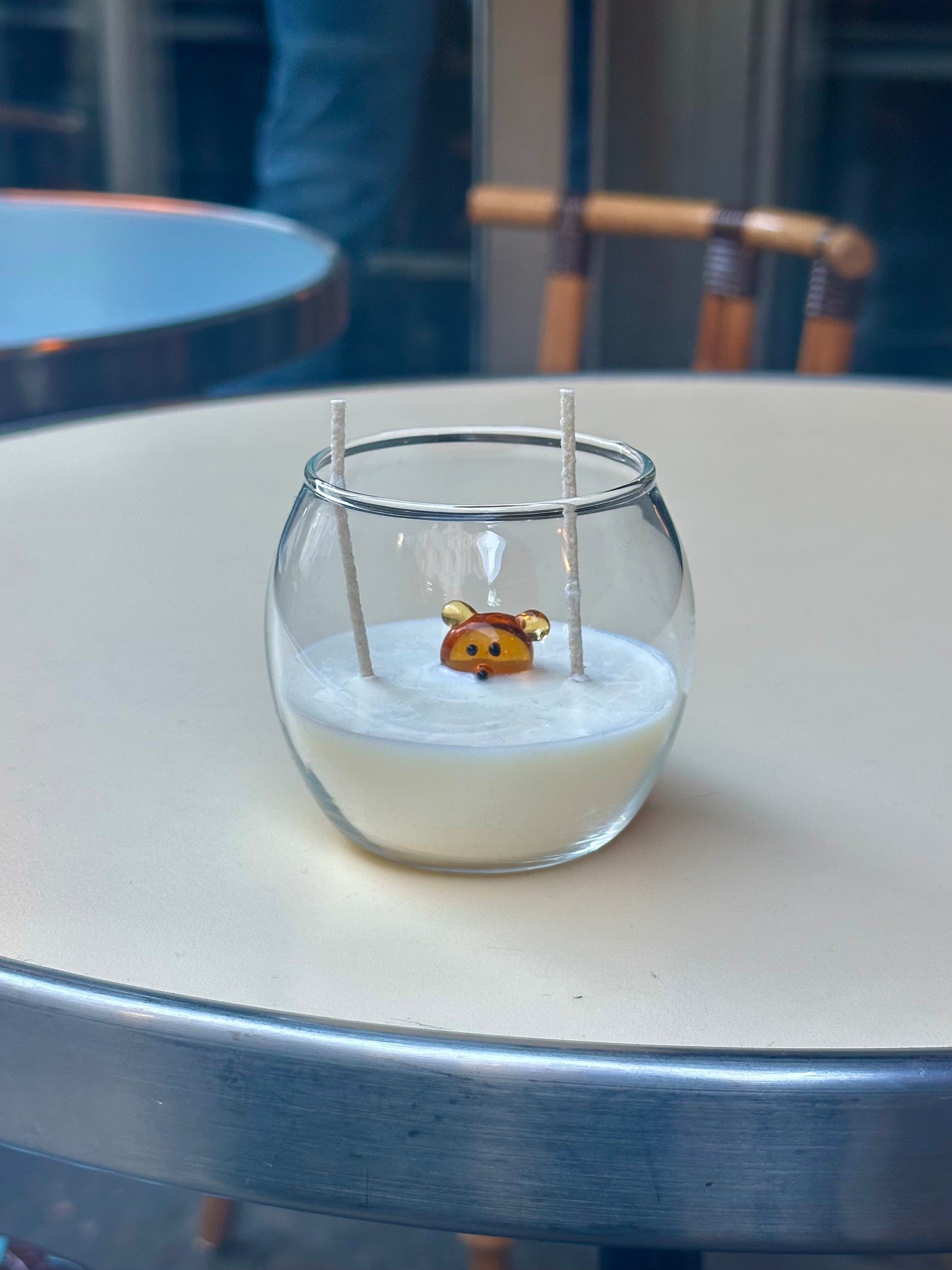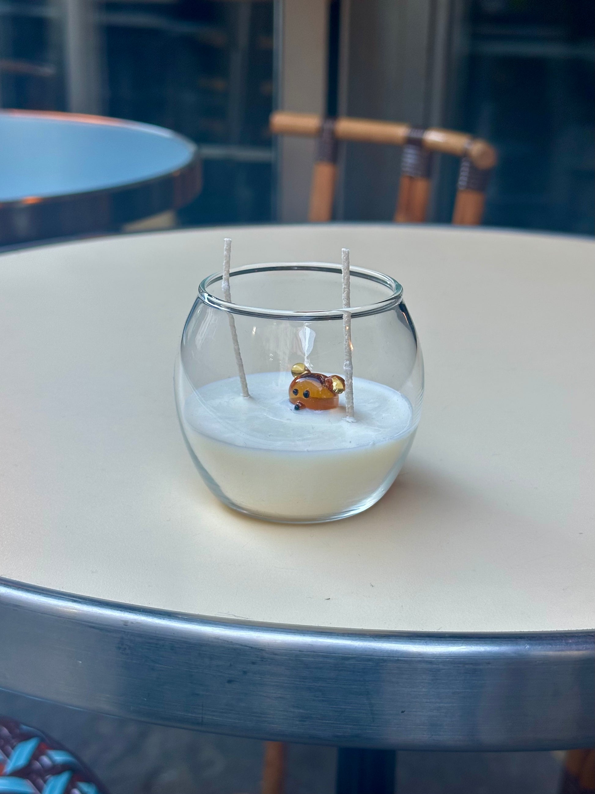 Inside a clear, minimalist glass rests a handcrafted Murano glass animal figurine, delicately shaped and suspended within smooth white soy wax. The result is timeless, artistic, and quietly luxurious.