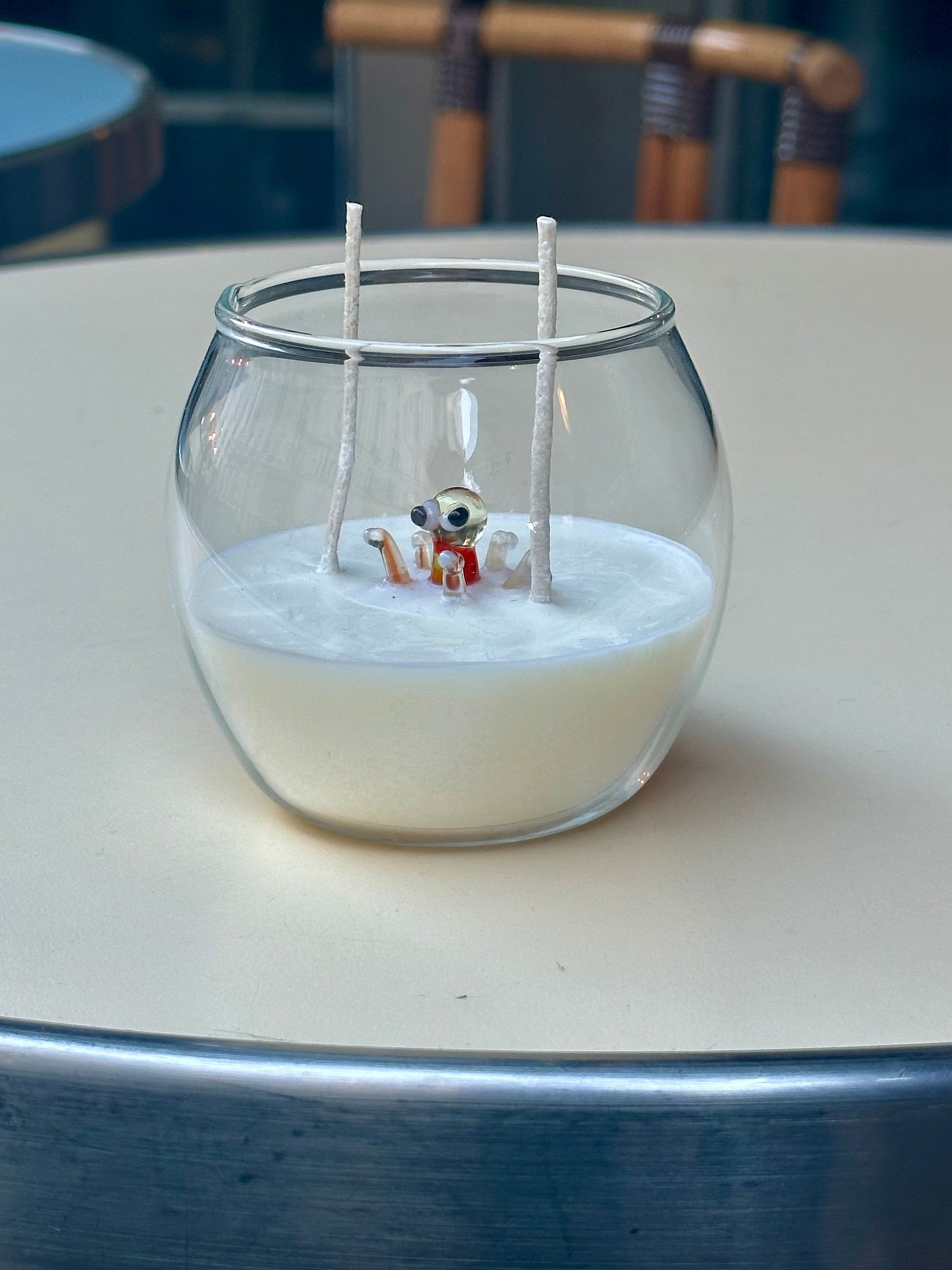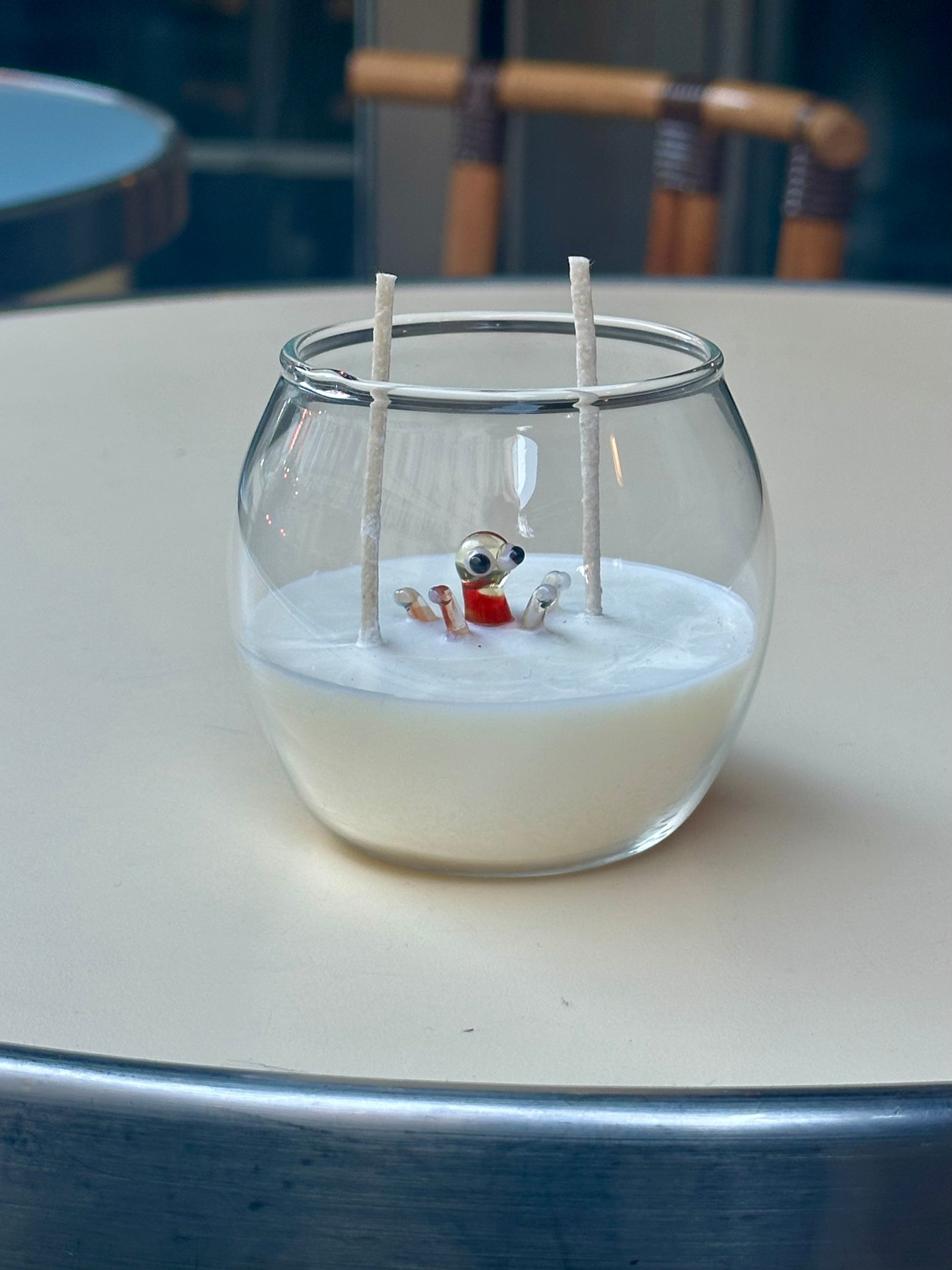 Inside a clear, minimalist glass rests a handcrafted Murano glass animal figurine, delicately shaped and suspended within smooth white soy wax. The result is timeless, artistic, and quietly luxurious.