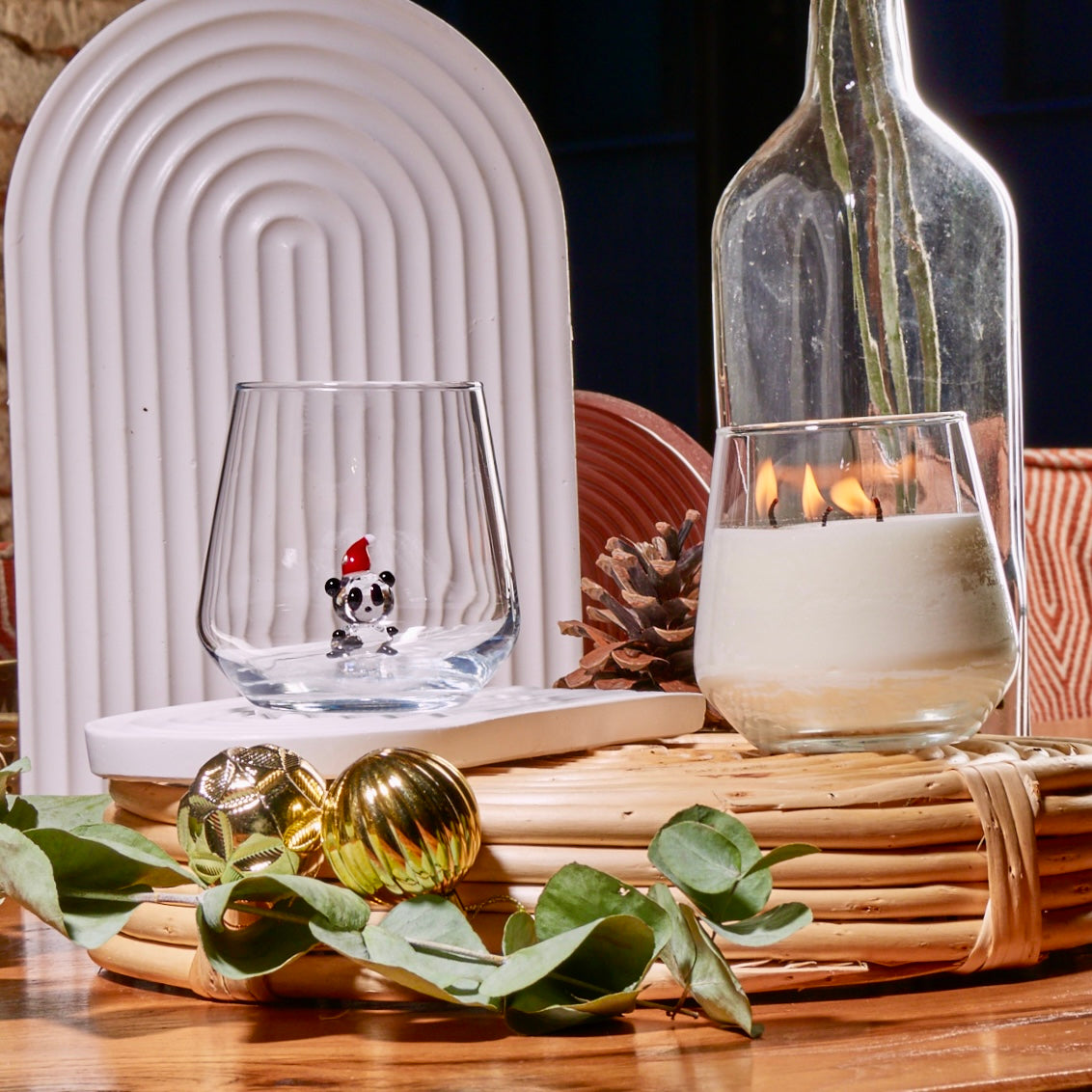 Handcrafted elegance: Illuminate your space with Murano glass animal figurines inside a glass tumbler. Every detail meticulously crafted, different Murano glass animal figures meet inside the glass, accompanied by a candle. This unique piece not only provides a visual delight but also adds sophistication to your home. Light up your home with this exceptional product and experience the beauty.
